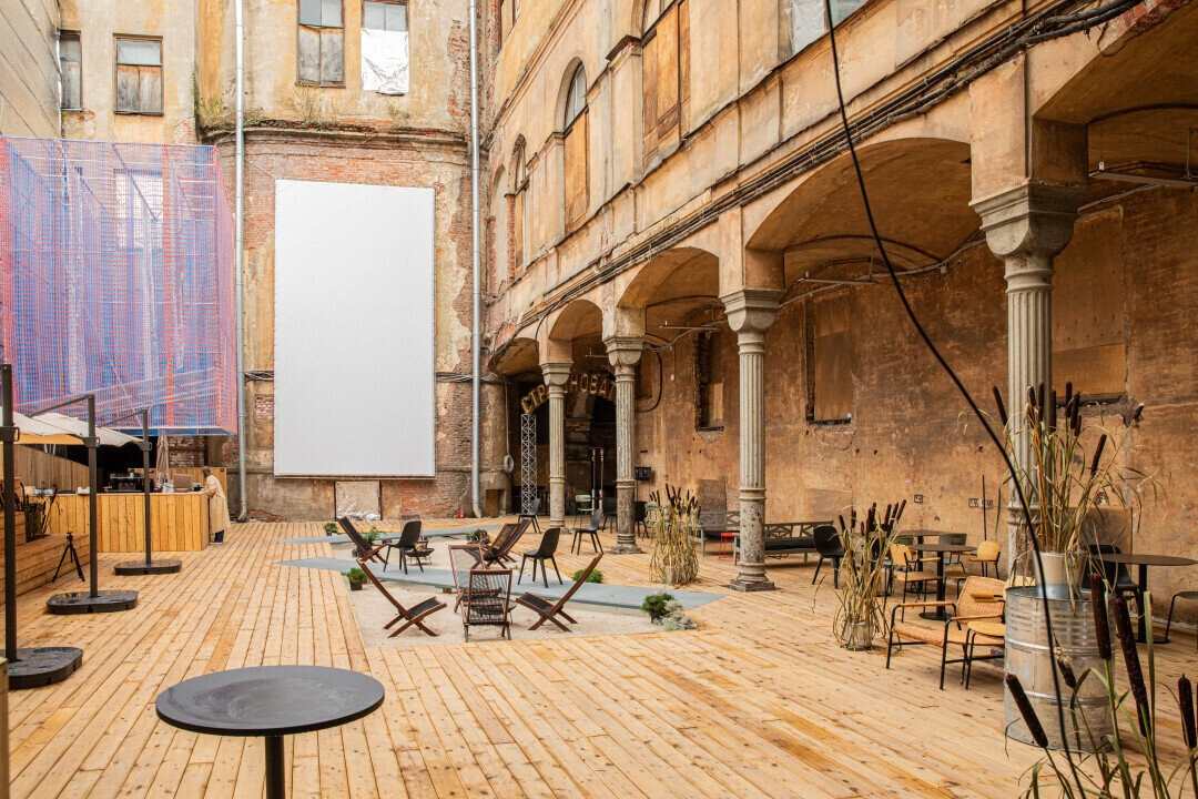 Общественное пространство во дворе особняка XIX века стало местом для летних киносеансов на открытом воздухе